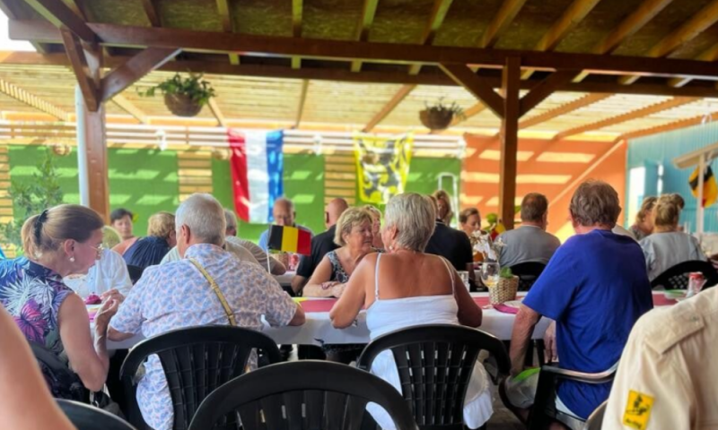 Ondanks de regen die af en toe naar beneden viel, leek niemand hier echt last van te hebben. Het enthousiasme en de gezelligheid waren zo groot dat we de regen nauwelijks opmerkten. Er werd nog lang nagepraat en gelachen, terwijl de regen zachtjes op het dak tikte.