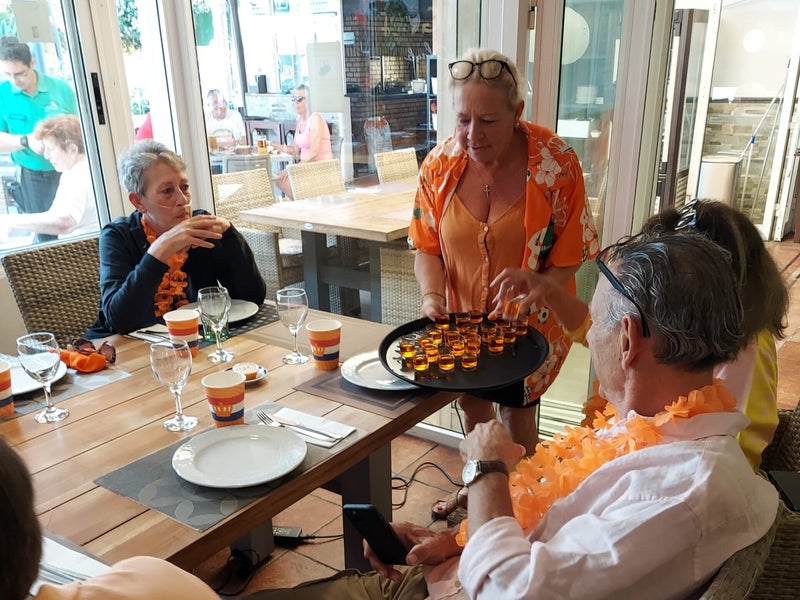 Na vele jaren in het zuiden, was het noorden aan de beurt om Koningsdag te organiseren. In in Puerto de la Cruz, was het een aangenaam welkom. Het vriendelijke personeel was erg behulpzaam. We mochten alles versieren. Ondanks de lage opkomst, kan ik zeggen dat het een geslaagde middag was. We hebben een openingswoord gehad van onze vice -voorzitter Jeanine en geproost en gezongen voor de Koning.