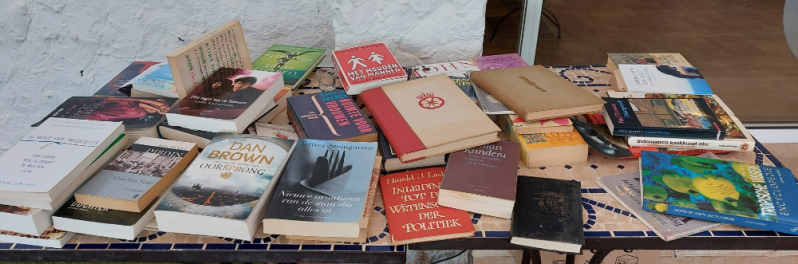 Het zou nog veel beter zijn als u wat extra boeken bij u steekt als u weer een evenement bezoekt. Zo groeit de keuze voor iedereen en houden we uiteindelijk een heel gevarieerd aanbod aan boeken in het Nederlands over die we met elkaar kunnen ruilen. Meedoen dus.