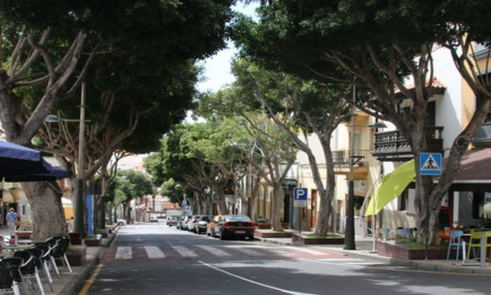 Het oude centrum van het dorp Adeje ligt bovenop een heuvel, tegen de berghellingen aan die het eerste begin van naar de Teide vormen. De belangrijkste straat begint op het Plaza de la Cruz del Llano en heet de Calle Grande. Onder lommerijke bomen met links en rechts barretjes en restaurants loopt de weg door tot er aan het eind daarvan de belangrijkste gebouwen van het dorp staan, het gemeentehuis en de kerk.