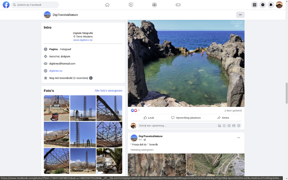 Als u wilt genieten van prachtige foto´s van Tenerife is deze facebookpagina zeer de moeite waard. De onderwerpen en de plekjes waar de foto´s gemaakt worden zijn bijzonder en het resultaat is kunstzinnig. Bij een aantal foto´s staat een nuttige toelichting. Alles bij elkaar kunt u deze pagina haast niet aan u voorbij laten gaan.